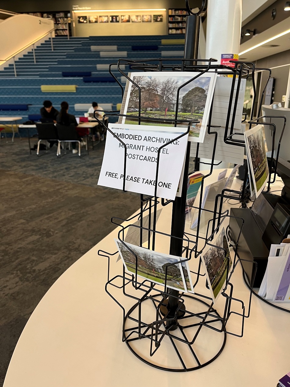 Tania CañasDrawing from the postcards developed on site in the 80s this work develops a contemporary postcard of the site. The postcards sit at the library service desk at Bunjil Place and are free to take. Postcards were also sent to the current residents of the retirement village to use as they please.