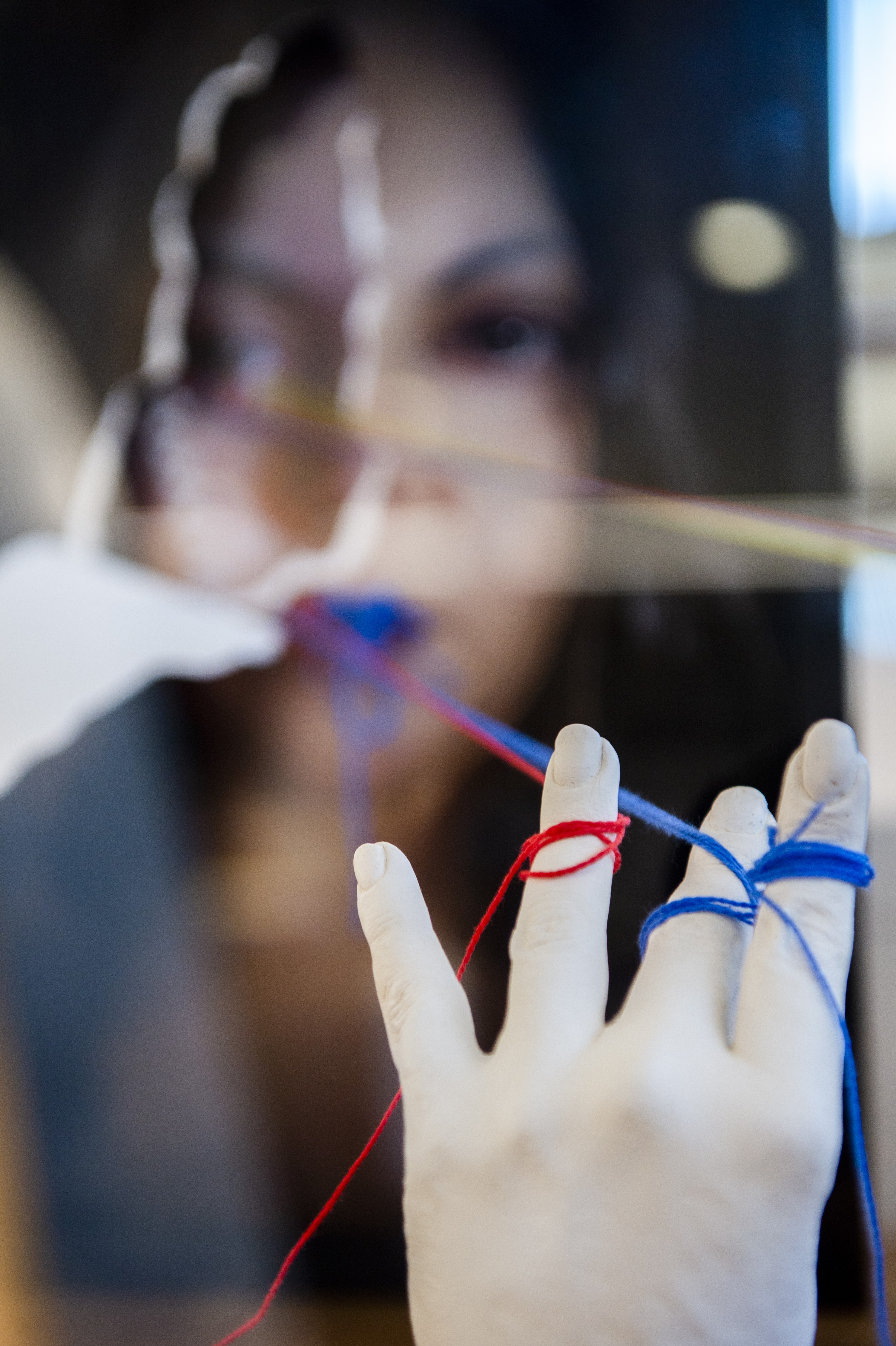 'Work in progress' installation work. 2023 Manipulated photo print on cotton rag paper, yarn and hydrocal hand casts.